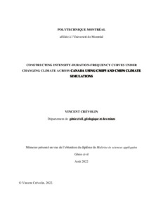 | Citer en APA 7: | Crévolin, V. (2022). Constructing Intensity-Duration-Frequency Curves Under Changing Climate in Canada Using CMIP5 and CMIP6 Climate Simulations [Mémoire de maîtrise, Polytechnique Montréal]. PolyPublie. https://publications.polymtl.ca/10503/ |
