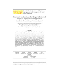 | Citer en APA 7: | Hertz, A., Montagné, R., & Gagnon, F. (2016). Constructive algorithms for the partial directed weighted improper coloring problem. Journal of Graph Algorithms and Applications, 20(2), 159-188. https://doi.org/10.7155/jgaa.00389 |