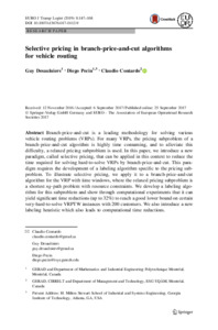 | Citer en APA 7: | Desaulniers, G., Pecin, D., & Contardo, C. (2019). Selective pricing in branch-price-and-cut algorithms for vehicle routing. EURO Journal on Transportation and Logistics, 8(2), 147-168. https://doi.org/10.1007/s13676-017-0112-9 |