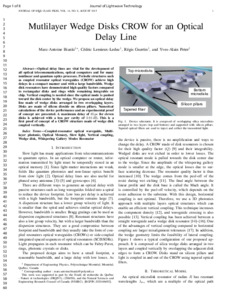| Citer en APA 7: | Bianki, M.-A., Lemieux-Leduc, C., Guertin, R., & Peter, Y.-A. (2022). Mutlilayer wedge disks CROW for an optical delay line. Journal of Lightwave Technology, 40(3), 770-775. https://doi.org/10.1109/jlt.2022.3142161 |