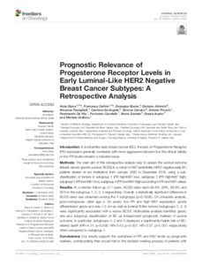| Citer en APA 7: | Diana, A., Carlino, F., Buono, G., Antoniol, G., Famiglietti, V., De Angelis, C., Carrano, S., Piccolo, A., De Vita, F., Ciardiello, F., Daniele, B., Arpino, G., & Orditura, M. (2022). Prognostic Relevance of Progesterone Receptor Levels in Early Luminal-Like HER2 Negative Breast Cancer Subtypes: A Retrospective Analysis. Frontiers in Oncology, 12. https://doi.org/10.3389/fonc.2022.813462 |
