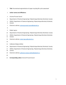 | Citer en APA 7: | Provost-Savard, A., Legros, R., & Majeau-Bettez, G. (2023). Parametrized regionalization of paper recycling life-cycle assessment. Waste Management, 156, 84-96. https://doi.org/10.1016/j.wasman.2022.11.018 |