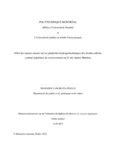 | Citer en APA 7: | Diallo, M. L. (2023). Effet des racines mortes sur les propriétés hydrogéotechniques des résidus utilisés comme matériaux de recouvrement sur le site minier Manitou [Mémoire de maîtrise, Polytechnique Montréal]. PolyPublie. https://publications.polymtl.ca/53359/ |