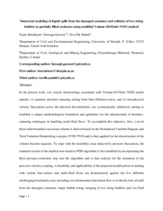 | Citer en APA 7: | Merabtene, T., Garoosi, F., & Mahdi, T.-F. (2023). Numerical modeling of liquid spills from the damaged container and collision of two rising bubbles in partially filled enclosure using modified Volume-Of-Fluid (VOF) method. Engineering Analysis with Boundary Elements, 154, 83-121. https://doi.org/10.1016/j.enganabound.2023.05.037 |