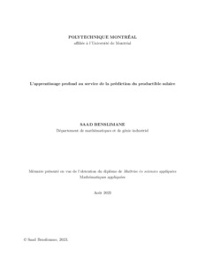| Citer en APA 7: | Benslimane, S. (2023). L'apprentissage profond au service de la prédiction du productible solaire [Mémoire de maîtrise, Polytechnique Montréal]. PolyPublie. https://publications.polymtl.ca/55220/ |