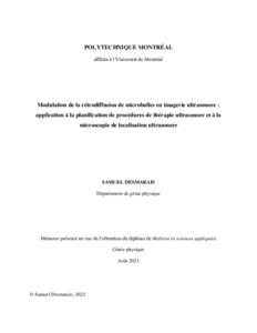 | Citer en APA 7: | Desmarais, S. (2023). Modulation de la rétrodiffusion de microbulles en imagerie ultrasonore : application à la planification de procédures de thérapie ultrasonore et à la microscopie de localisation ultrasonore [Mémoire de maîtrise, Polytechnique Montréal]. PolyPublie. https://publications.polymtl.ca/55221/ |