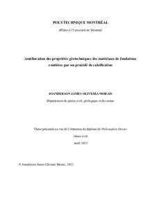 | Citer en APA 7: | Oliveira Morais, J. J. (2023). Amélioration des propriétés géotechniques des matériaux de fondations routières par un procédé de calcification [Thèse de doctorat, Polytechnique Montréal]. PolyPublie. https://publications.polymtl.ca/55233/ |