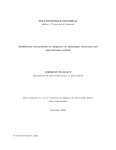 | Citer en APA 7: | Playout, C. (2023). Modélisation interprétable du diagnostic de pathologies rétiniennes par apprentissage profond [Thèse de doctorat, Polytechnique Montréal]. PolyPublie. https://publications.polymtl.ca/55773/ |