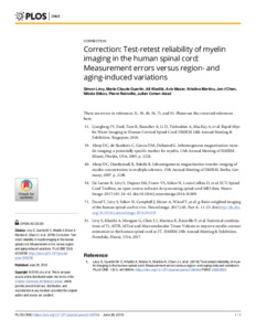 | Citer en APA 7: | Lévy, S., Guertin, M.-C., Khatibi, A., Mezer, A., Martinu, K., Chen, J. I., Stikov, N., Rainville, P., & Cohen-Adad, J. (2018). Correction: Test-retest reliability of myelin imaging in the human spinal cord: Measurement errors versus region- and aging-induced variations. PLOS ONE, 13(6), e0199796 (1 page). https://doi.org/10.1371/journal.pone.0199796 |