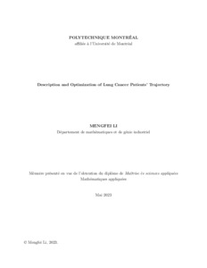 | Citer en APA 7: | Li, M. (2023). Description and Optimization of Lung Cancer Patients' Trajectory [Mémoire de maîtrise, Polytechnique Montréal]. PolyPublie. https://publications.polymtl.ca/55971/ |