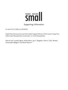 | Citer en APA 7: | Uzel, A., Agiotis, L., Baron, A., Zhigaltsev, I. V., Cullis, P. R., Kafshgari, M. H., & Meunier, M. (2023). Single pulse nanosecond laser‐stimulated targeted delivery of anti‐cancer drugs from hybrid lipid nanoparticles containing 5 nm gold nanoparticles. Small, 19(52), 2305591 (11 pages). https://doi.org/10.1002/smll.202305591 |
