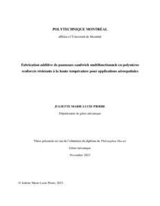 | Citer en APA 7: | Pierre, J. M. L. (2023). Fabrication additive de panneaux sandwich multifonctionnels en polymères renforcés résistants à la haute température pour applications aérospatiales [Thèse de doctorat, Polytechnique Montréal]. PolyPublie. https://publications.polymtl.ca/56770/ |