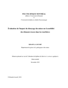 | Citer en APA 7: | Loussif, K. (2023). Évaluation de l'impact du dénoyage des mines sur la mobilité des éléments traces dans les tourbières [Mémoire de maîtrise, Polytechnique Montréal]. PolyPublie. https://publications.polymtl.ca/56776/ |