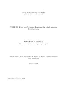 | Citer en APA 7: | Marrocco, J.-S. (2023). TRIPT-IDS: Triplet Loss Pre-Trained Transformer for Avionic Intrusion Detection System [Mémoire de maîtrise, Polytechnique Montréal]. PolyPublie. https://publications.polymtl.ca/56994/ |