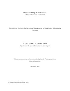 | Citer en APA 7: | Martins Silva, M. C. (2023). Data-Driven Methods for Inventory Management in Dock-Based Bike-Sharing Systems [Thèse de doctorat, Polytechnique Montréal]. PolyPublie. https://publications.polymtl.ca/57038/ |