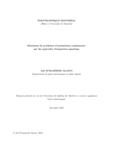 | Citer en APA 7: | M'Hammedi Alaoui, A. (2023). Résolution de problèmes d'optimisation combinatoire par des approches d'inspiration quantique [Mémoire de maîtrise, Polytechnique Montréal]. PolyPublie. https://publications.polymtl.ca/57039/ |