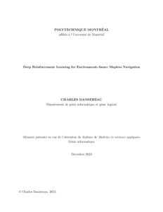 | Citer en APA 7: | Dansereau, C. (2023). Deep Reinforcement Learning for Environment-Aware Mapless Navigation [Mémoire de maîtrise, Polytechnique Montréal]. PolyPublie. https://publications.polymtl.ca/57051/ |