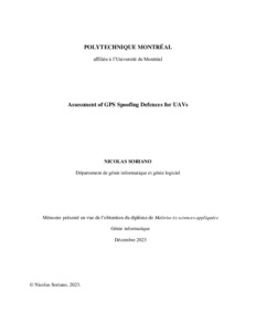 | Citer en APA 7: | Soriano, N. (2023). Assessment of GPS Spoofing Defences for UAVs [Mémoire de maîtrise, Polytechnique Montréal]. PolyPublie. https://publications.polymtl.ca/57063/ |
