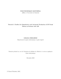| Citer en APA 7: | Ebrahimi, G. (2023). Towards a Toolbox for Quantitative and Automatic Evaluation of 3D Trunk Motion in Patients with AIS [Mémoire de maîtrise, Polytechnique Montréal]. PolyPublie. https://publications.polymtl.ca/57091/ |