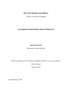 | Citer en APA 7: | Khamani, S. (2023). Investigating Mechanical Recycling of Fishing Nets [Mémoire de maîtrise, Polytechnique Montréal]. PolyPublie. https://publications.polymtl.ca/57114/ |