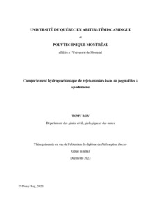 | Citer en APA 7: | Roy, T. (2023). Comportement hydrogéochimique de rejets miniers issus de pegmatites à spodumène [Thèse de doctorat, Polytechnique Montréal]. PolyPublie. https://publications.polymtl.ca/57119/ |