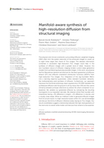 | Citer en APA 7: | Anctil-Robitaille, B., Théberge, A., Jodoin, P.-M., Descoteaux, M., Desrosiers, C., & Lombaert, H. (2022). Manifold-aware synthesis of high-resolution diffusion from structural imaging. Frontiers in Neuroimaging, 1, 20 pages. https://doi.org/10.3389/fnimg.2022.930496 |