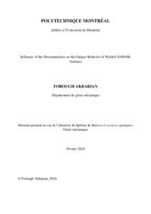 | Citer en APA 7: | Akbarian, F. (2024). Influence of the Discontinuities on the Fatigue Behavior of Welded 410NiMo Turbines [Mémoire de maîtrise, Polytechnique Montréal]. PolyPublie. https://publications.polymtl.ca/57724/ |
