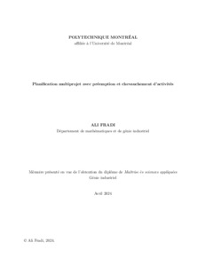 | Citer en APA 7: | Fradi, A. (2024). Planification multiprojet avec préemption et chevauchement d'activités [Mémoire de maîtrise, Polytechnique Montréal]. PolyPublie. https://publications.polymtl.ca/58310/ |