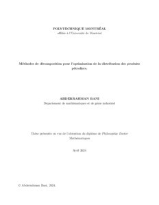 | Citer en APA 7: | Bani, A. (2024). Méthodes de décomposition pour l'optimisation de la distribution des produits pétroliers. [Thèse de doctorat, Polytechnique Montréal]. PolyPublie. https://publications.polymtl.ca/58322/ |