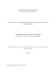 | Citer en APA 7: | Silva De Oliveira, A. S. (2024). Predictive Power of Large Language Models in Bug Severity Detection: An Explorative Study [Mémoire de maîtrise, Polytechnique Montréal]. PolyPublie. https://publications.polymtl.ca/58326/ |