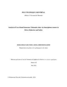| Citer en APA 7: | Ghavidel Gholamhosseinzadeh, M. (2024). Analysis of User-Based Insurance Telematics data via Smartphone sensors in Driver Behavior and Safety [Mémoire de maîtrise, Polytechnique Montréal]. PolyPublie. https://publications.polymtl.ca/58344/ |