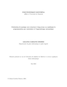 | Citer en APA 7: | Demers, L.-C. (2024). Génération de musique avec structure à long terme en combinant la programmation par contraintes et l'apprentissage automatique [Mémoire de maîtrise, Polytechnique Montréal]. PolyPublie. https://publications.polymtl.ca/58348/ |