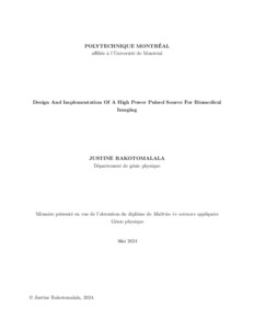 | Citer en APA 7: | Rakotomalala, J. (2024). Design and Implementation of a High Power Pulsed Source for Biomedical Imaging [Mémoire de maîtrise, Polytechnique Montréal]. PolyPublie. https://publications.polymtl.ca/58352/ |
