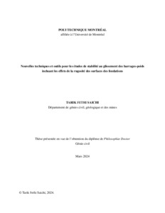 | Citer en APA 7: | Saichi, T. F. (2024). Nouvelles techniques et outils pour les études de stabilité au glissement des barrages-poids incluant les effets de la rugosité des surfaces des fondations [Thèse de doctorat, Polytechnique Montréal]. PolyPublie. https://publications.polymtl.ca/58353/ |