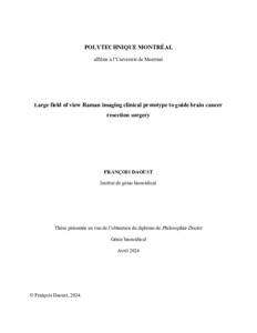 | Citer en APA 7: | Daoust, F. (2024). Large Field of View Raman Imaging Clinical Prototype to Guide Brain Cancer Resection Surgery [Thèse de doctorat, Polytechnique Montréal]. PolyPublie. https://publications.polymtl.ca/58355/ |