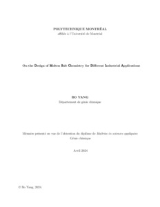 | Citer en APA 7: | Yang, B. (2024). On the Design of Molten Salt Chemistry for Different Industrial Applications [Mémoire de maîtrise, Polytechnique Montréal]. PolyPublie. https://publications.polymtl.ca/58358/ |