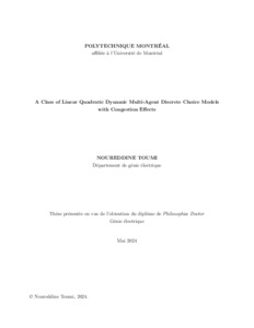 | Citer en APA 7: | Toumi, N. (2024). A Class of Linear Quadratic Dynamic Multi-Agent Discrete Choice Models with Congestion Effects [Thèse de doctorat, Polytechnique Montréal]. PolyPublie. https://publications.polymtl.ca/58601/ |