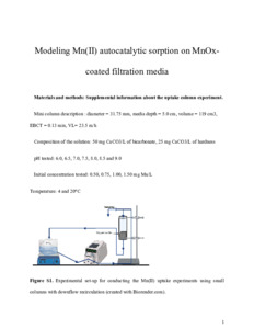 This study reports a newly developed kinetic model for predicting manganese (Mn) removal in Mn-coated filtration media. Manganese oxides (MnOx) adsorb and catalyze the oxidation of Mn in the liquid phase to regenerate sorption sites. The most common kinetic models (pseudo-first- and second-order models) do not consider the regeneration of reactive sites, thereby inadequately describing the long-term uptake of Mn(II) by MnOx. We propose a new kinetic model that considers both the rapid initial sorption of Mn(II) onto MnOx and its subsequent slow oxidation to Mn(Ox). This model was generalized to account for different pH, temperatures, and initial Mn concentrations. The enhanced model demonstrated a prediction error of +/−1 % on the Mn(II) concentration measured in the column effluent of two different MnOx media recovered from industrial filters. Although the contribution of oxidation was found to be 10 times smaller than that of adsorption, it is important to consider if for the prediction of Mn(II) uptake over a 4-h column experiment.