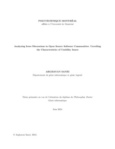 | Citer en APA 7: | Sanei, A. (2024). Analyzing Issue Discussions in Open Source Software Communities: Unveiling the Characteristics of Usability Issues [Thèse de doctorat, Polytechnique Montréal]. PolyPublie. https://publications.polymtl.ca/59017/ |