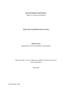 | Citer en APA 7: | Wang, D. (2024). Elastic Time Step Reinforcement Learning [Thèse de doctorat, Polytechnique Montréal]. PolyPublie. https://publications.polymtl.ca/59033/ |
