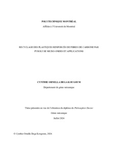 | Citer en APA 7: | Dega Kougoum, C. O. (2024). Récyclage des plastiques renforcés de fibres de carbone par pyrolyse micro-ondes et applications [Thèse de doctorat, Polytechnique Montréal]. PolyPublie. https://publications.polymtl.ca/59101/ |