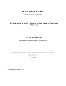 | Citer en APA 7: | Lena, A. M. R. (2024). Développement d'un outil de réflexion stratégique adapté aux écosystèmes d'innovation [Mémoire de maîtrise, Polytechnique Montréal]. PolyPublie. https://publications.polymtl.ca/59118/ |