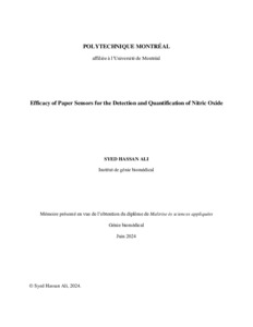 | Citer en APA 7: | Ali, S. H. (2024). Efficacy of Paper Sensors for the Detection and Quantification of Nitric Oxide [Mémoire de maîtrise, Polytechnique Montréal]. PolyPublie. https://publications.polymtl.ca/59155/ |