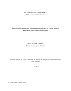 | Citer en APA 7: | Lakhal, A. A. (2024). Spectroscopie optique des fluctuations de courants de charge dans les semiconducteurs centrosymmetriques [Mémoire de maîtrise, Polytechnique Montréal]. PolyPublie. https://publications.polymtl.ca/59174/ |