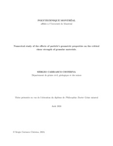 | Citer en APA 7: | Carrasco Cisterna, S. (2024). Numerical study of the effects of particle's geometric properties on the critical shear strength of granular materials. [Thèse de doctorat, Polytechnique Montréal]. PolyPublie. https://publications.polymtl.ca/59181/ |