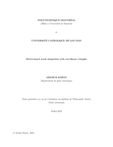 | Citer en APA 7: | Bawin, A. (2024). Metric-based Mesh Adaptation with Curvilinear Triangles [Thèse de doctorat, Polytechnique Montréal]. PolyPublie. https://publications.polymtl.ca/59198/ |