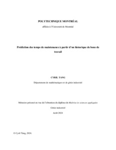 | Citer en APA 7: | Tang, C. (2024). Prédiction des temps de maintenance à partir d'un historique de bons de travail [Mémoire de maîtrise, Polytechnique Montréal]. PolyPublie. https://publications.polymtl.ca/59204/ |