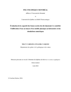 | Citer en APA 7: | Otalora Vasquez, N. C. (2024). Évaluation de la capacité des boues-scories du site Quemont 2 à contrôler l'infiltration d'eau au moyen d'un modèle physique au laboratoire et des simulations numériques [Mémoire de maîtrise, Polytechnique Montréal]. PolyPublie. https://publications.polymtl.ca/59278/ |
