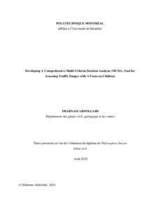 | Citer en APA 7: | Abdollahi, S. (2024). Developing A Comprehensive Multi-Criteria Decision Analysis (MCDA) Tool for Assessing Traffic Danger with A Focus on Children [Thèse de doctorat, Polytechnique Montréal]. PolyPublie. https://publications.polymtl.ca/59430/ |
