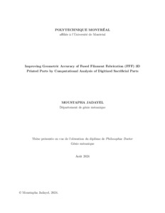 | Citer en APA 7: | Jadayel, M. (2024). Improving Geometric Accuracy of Fused Filament Fabrication (FFF) 3D Printed Parts by Computational Analysis of Digitized Sacrificial Parts [Thèse de doctorat, Polytechnique Montréal]. PolyPublie. https://publications.polymtl.ca/59432/ |